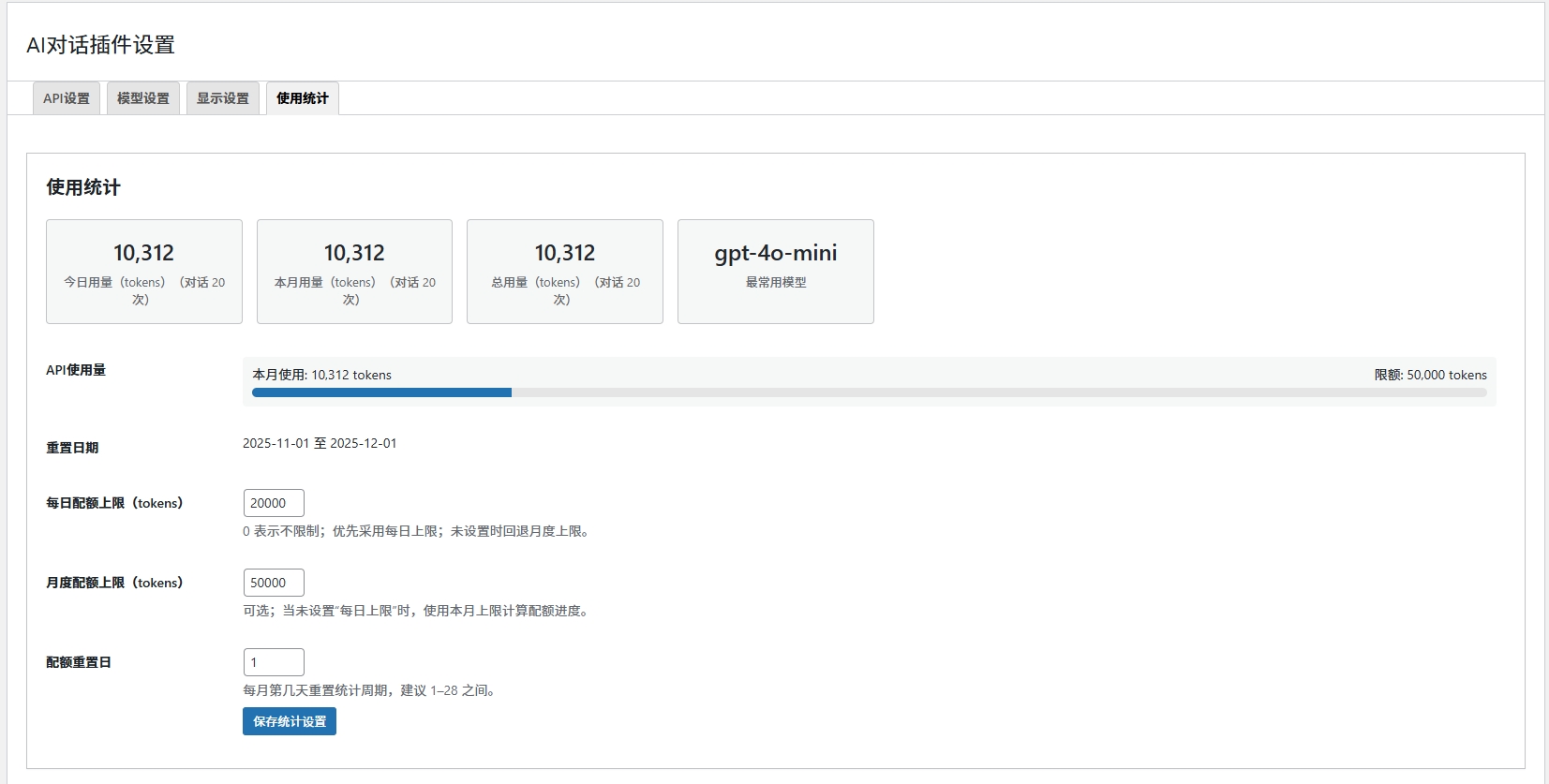 该插件适用于多种业务场景:内容网站可借助其实现阅读辅助与知识问答,企业官网能够构建自动化咨询与售前引导系统,教育类站点则可部署为随身的答疑与学习助手。其内置的授权体系确保功能在有效期内稳定运行,同时提供使用量统计功能,便于管理员掌握 token 消耗与常用模型数据。