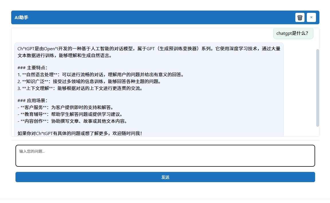 在技术实现上,插件支持可配置的 AI 模型白名单,允许管理员设定生成参数如温度值与最大 Token 数。对话记忆功能通过浏览器本地 Session 实现多轮对话的连贯性,而流式输出技术(兼容 NDJSON/SSE)则让回答呈现更加自然流畅。